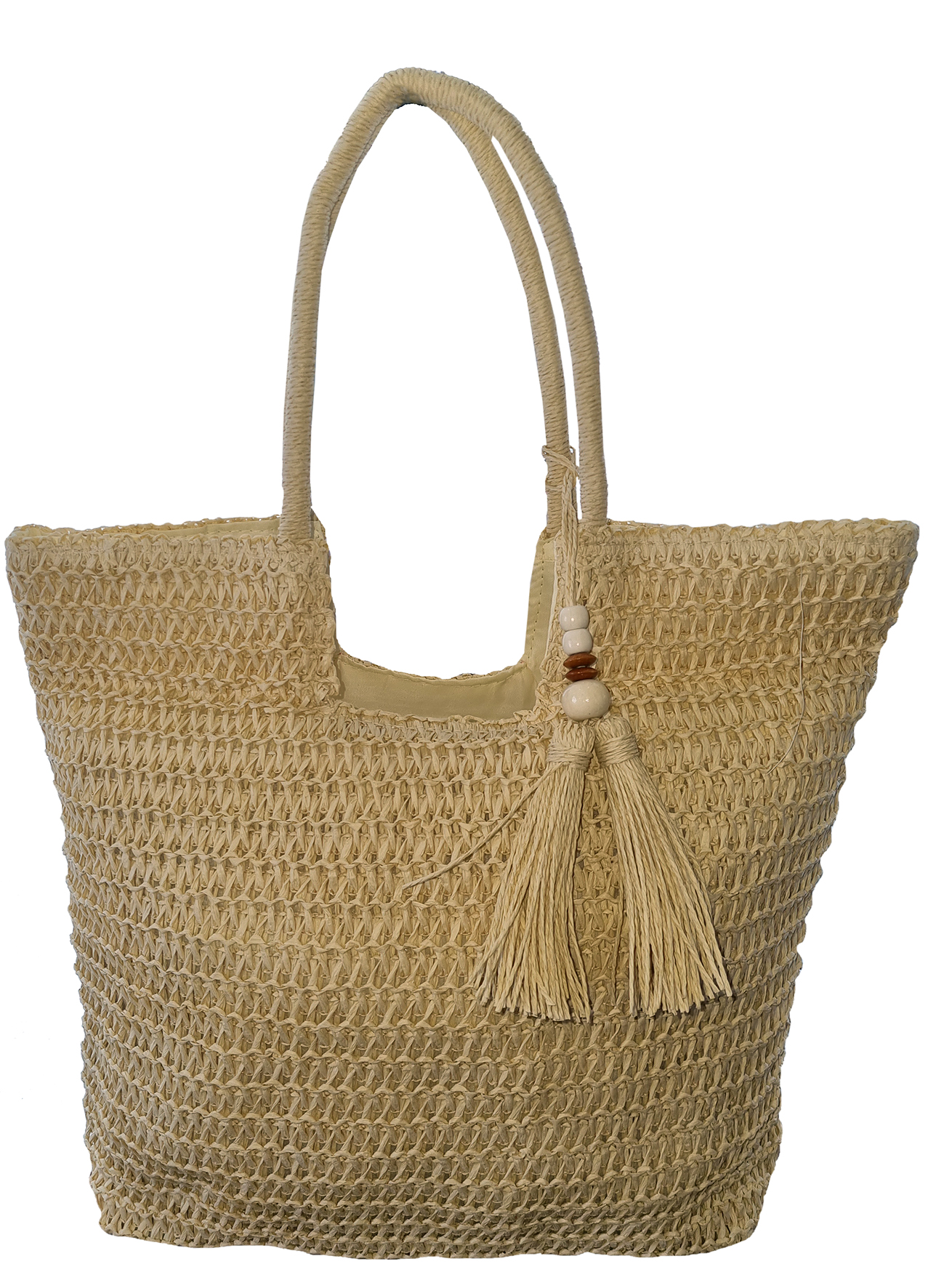 Ψάθινη τσάντα χειρός σε μπεζ και καφέ χρώμα. Κλείνει με φερμουάρ και περιλαμβάνει θήκη για την φύλαξη των χρημάτων, αλλά και των μικροαντικειμένων.